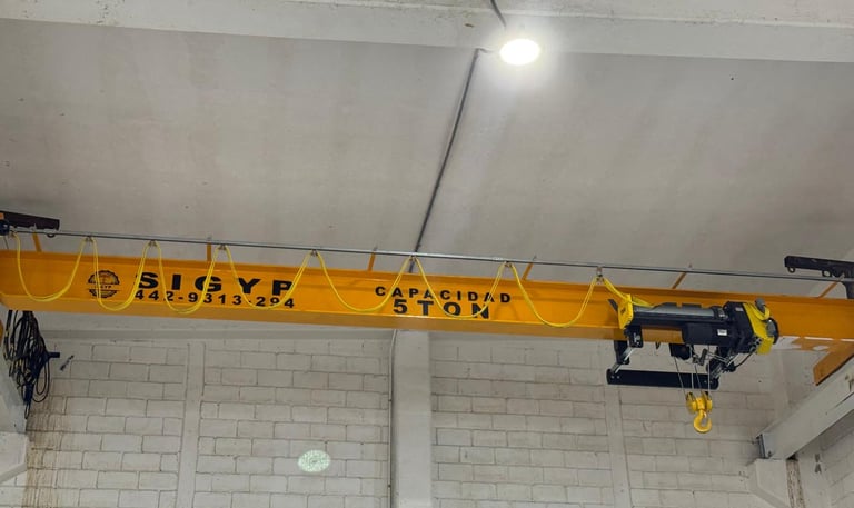 Las grúas viajeras tipo pórtico de SIGYP ofrecen capacidad de elevación con estructura modular adaptable a cualquier espacio.